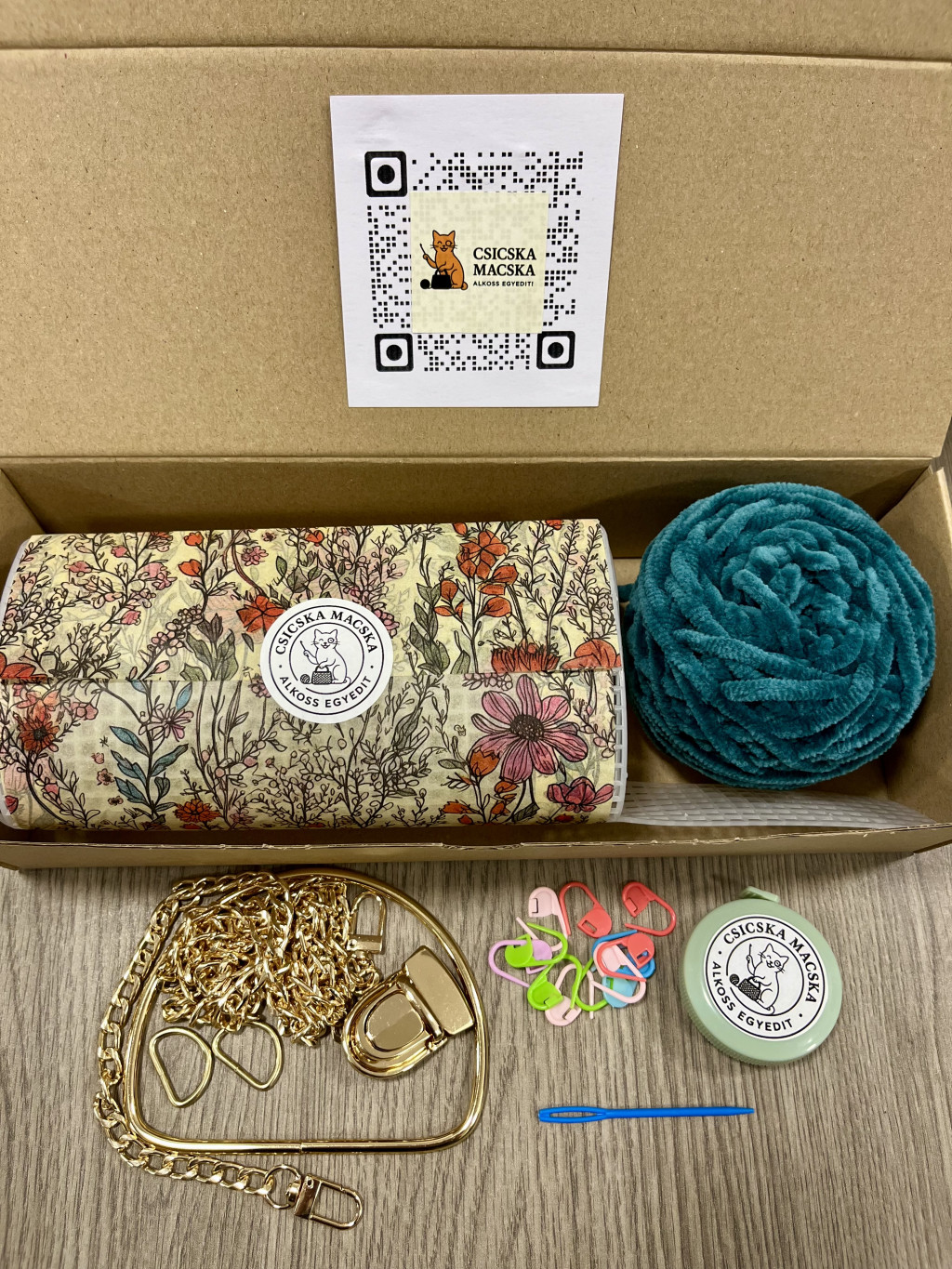 A képen szereplő táska nem képezi a szett részét, de mindent tartalmaz, hogy elkészíthesd. :)