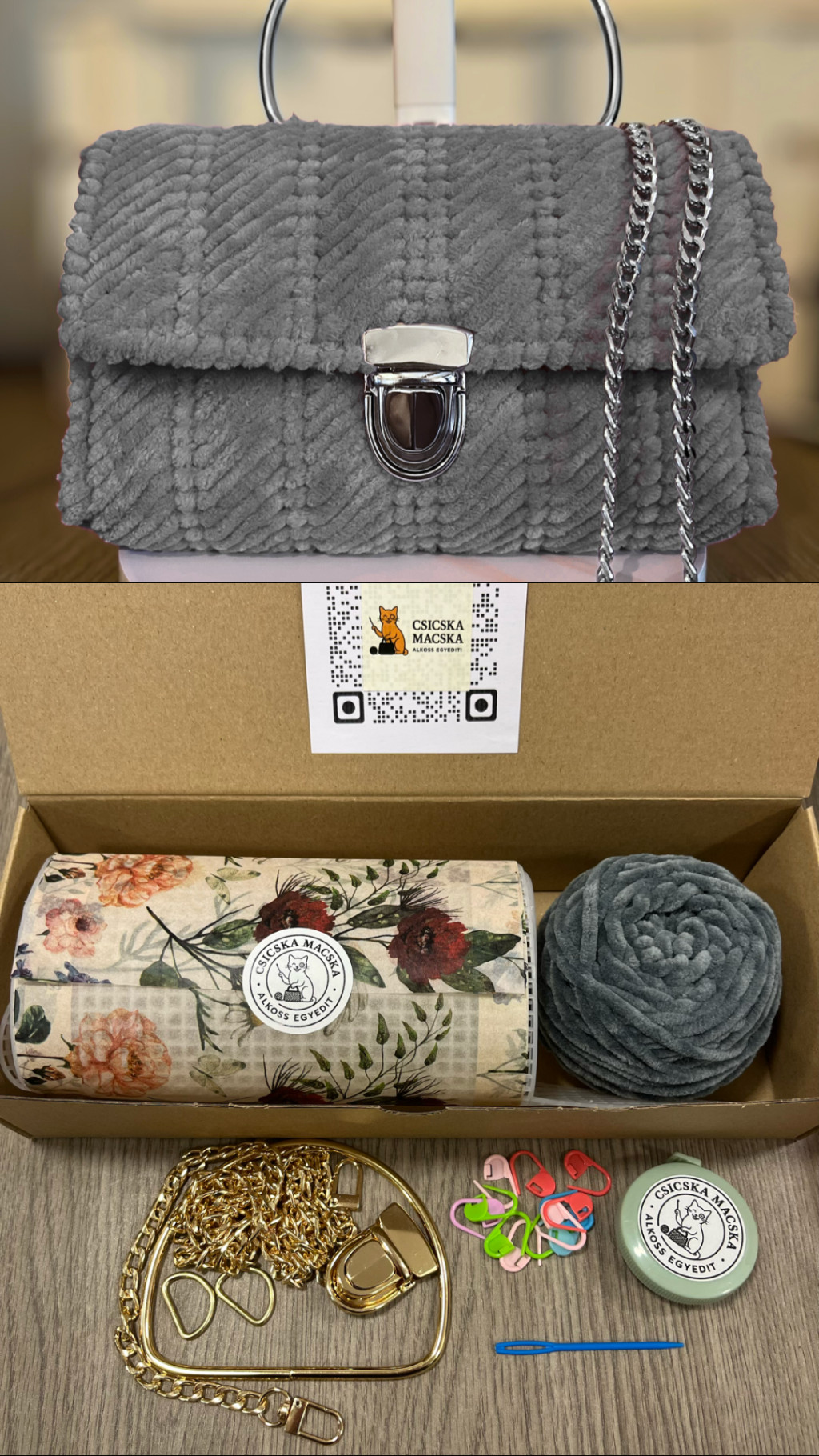 A képen szereplő táska nem képezi a szett részét, de mindent tartalmaz, hogy elkészíthesd. :)