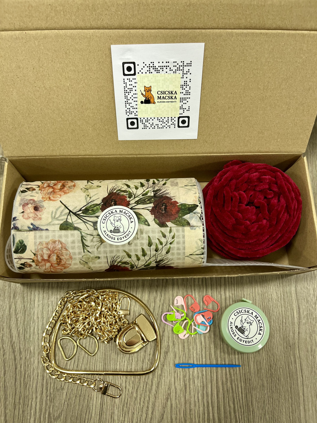 A képen szereplő táska nem képezi a szett részét, de mindent tartalmaz, hogy elkészíthesd. :)